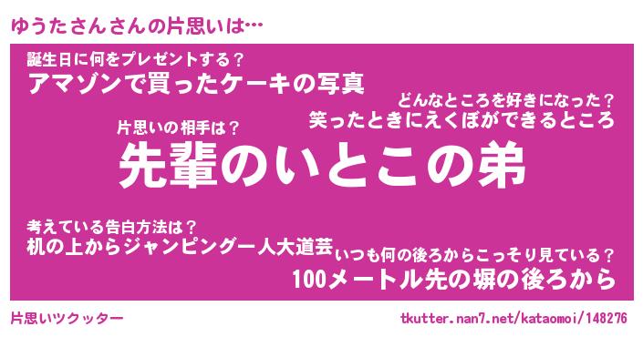| ヘコむあだ名 | 『ゆうもー』『なまこ酢』『ゆうお』 |
