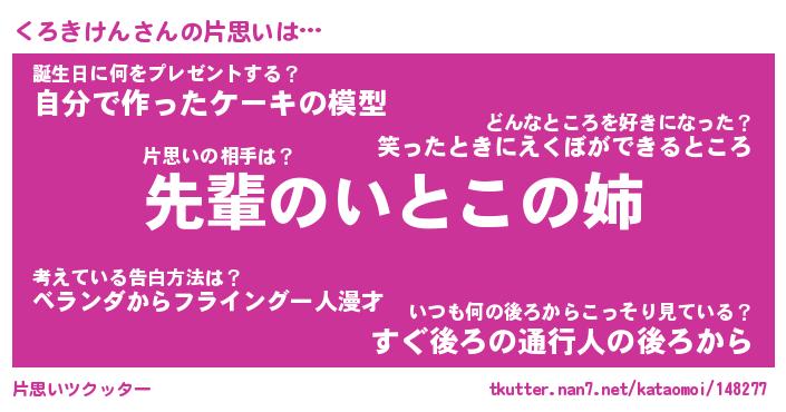| ヘコむあだ名 | 『くろもー』『つくし』『くろっぺ』 |