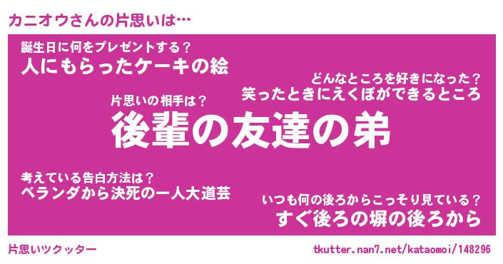 | 意味不明あだ名 | 『ペロリンカニオウ』『永久保存カニオウ』 |