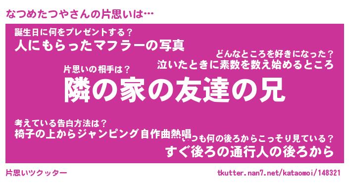 | 胡散臭い通販商品みたいなあだ名 | 『必ず成功する霊験あらたかなお札…その名も「なつめたつや」』 |
