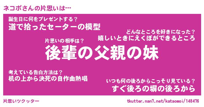 | 意味不明あだ名 | 『ペロリンネコポ』『ネコポフォーエバー』 |
