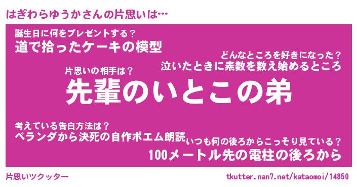 | 男性向けラノベタイトル風あだ名 | 『はぎわらゆうかの憂鬱』 |