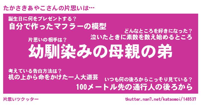| 女子向けラノベタイトル風あだ名 | 『(仮)たかさきあやこのやんごとなき事情』 |