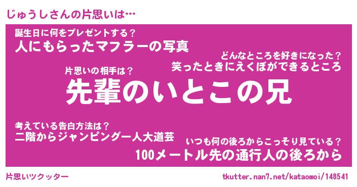 | ヘコむあだ名 | 『じゅもー』『なまこ酢』『じゅ太郎』 |