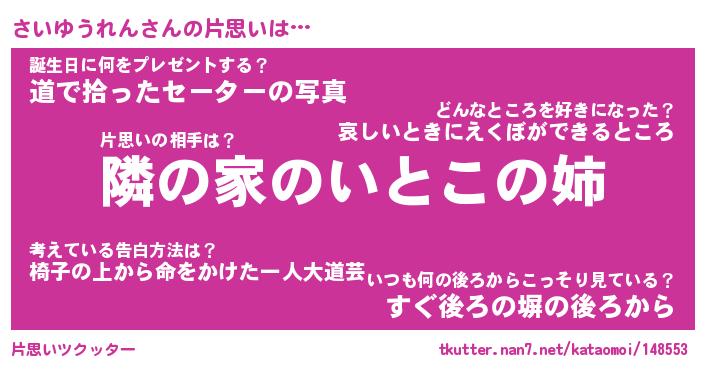 | 男性向けラノベタイトル風あだ名 | 『さいゆうれんの憂鬱』 |