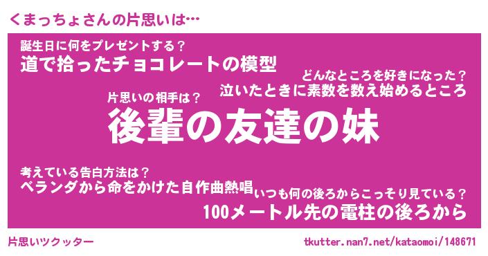 | ヘコむあだ名 | 『くまっふぃ~』『なまこ酢』 |