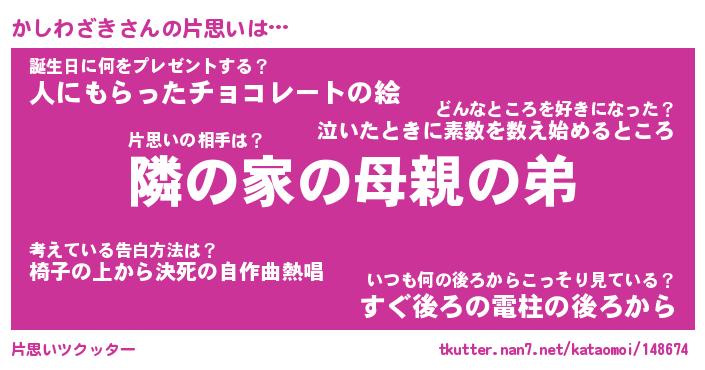| 胡散臭い通販商品みたいなあだ名 | 『必ず成功するブレスレット…その名も「かしわざき」』 |