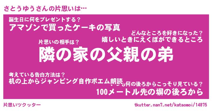 | 胡散臭い通販商品みたいなあだ名 | 『モテモテ間違いなし水晶球…その名も「さとうゆう」』 |