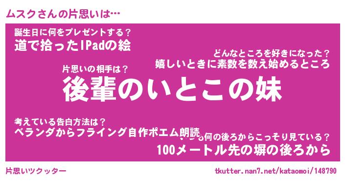 | 意味不明あだ名 | 『ペロリンムスク』『ムスクフォーエバー』 |