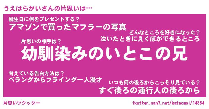 | ヘコむあだ名 | 『うえもー』『豆乳』『うえ太郎』 |