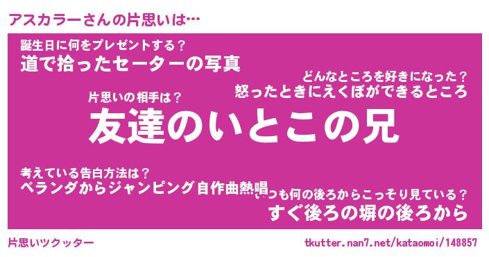 | ヒーロー風カッコイイあだ名 | 『スーパーアスカラー』『魔戒騎士アス』 |