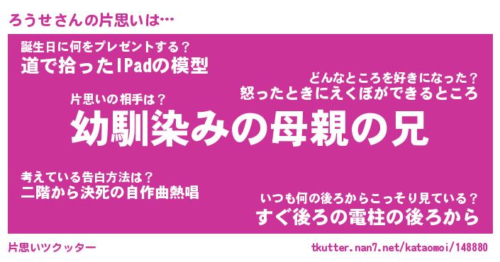 | ヘコむあだ名 | 『ろうにー』『酢こんぶ』『ろう太郎』 |