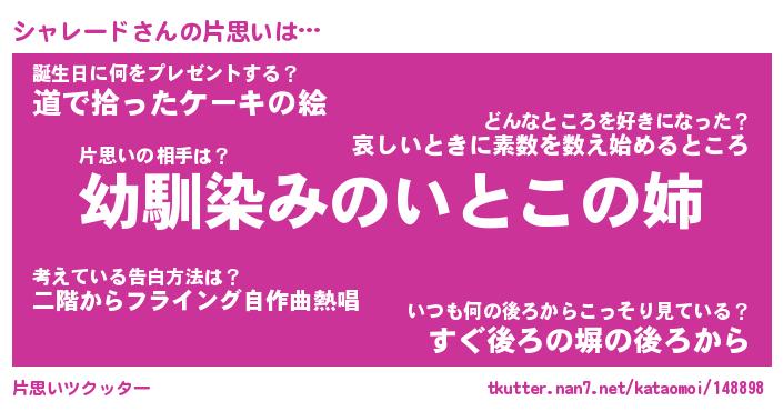 | 恥ずかしいあだ名 | 『プリティーシャレード』『シャっちょ』 |