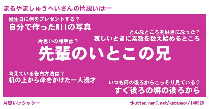 | 胡散臭い通販商品みたいなあだ名 | 『モテモテ間違いなし霊験あらたかなお札…その名も「まるやましゅうへい」』 |