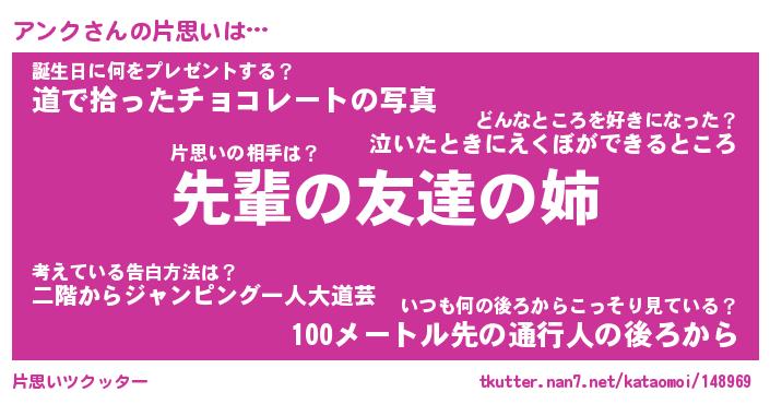 | 意味不明あだ名 | 『ペロリンアンク』『アンクフォーエバー』 |