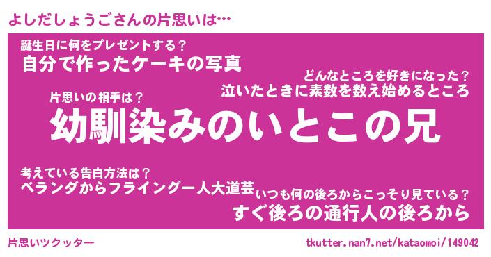 | 男性向けラノベタイトル風あだ名 | 『よしだしょうごの憂鬱』 |