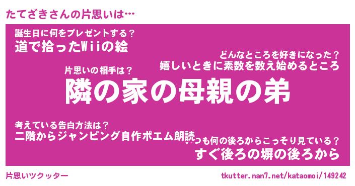| 胡散臭い通販商品みたいなあだ名 | 『必ず成功するブレスレット…その名も「たてざき」』 |