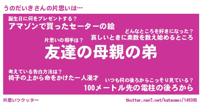 | ヘコむあだ名 | 『うのふぇ~』『なまこ酢』『うのお』 |