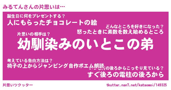 | 男性向けラノベタイトル風あだ名 | 『みるてんの憂鬱』 |