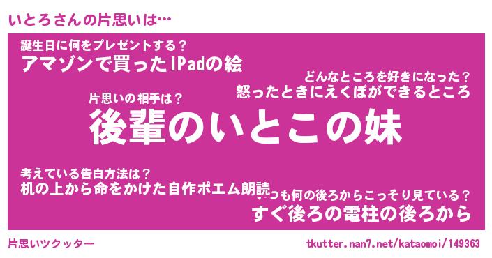 | ヘコむあだ名 | 『いともー』『なまこ酢』『いと太郎』 |
