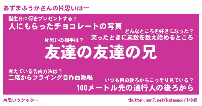 | ヘコむあだ名 | 『あずっふぃ~』『豆乳』『あず太郎』 |