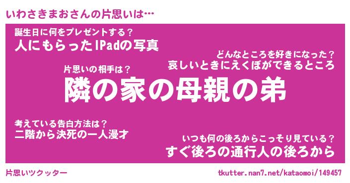 | ヘコむあだ名 | 『いわにー』『つくし』『いわぷりん』 |