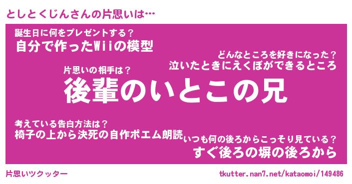 | ヘコむあだ名 | 『としにゅー』『つくし』『とし太郎』 |