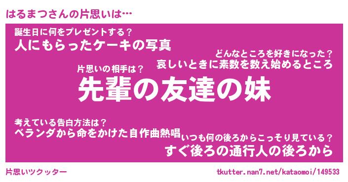 | 意味不明あだ名 | 『ペロリンはるまつ』『永久保存はるまつ』 |