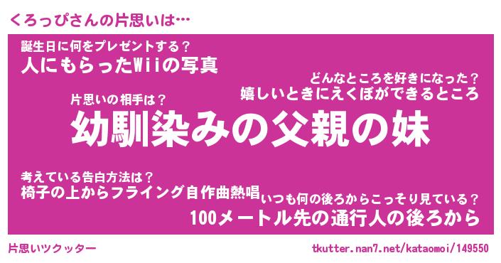 | 意味不明あだ名 | 『ペロリンくろっぴ』『永久保存くろっぴ』 |