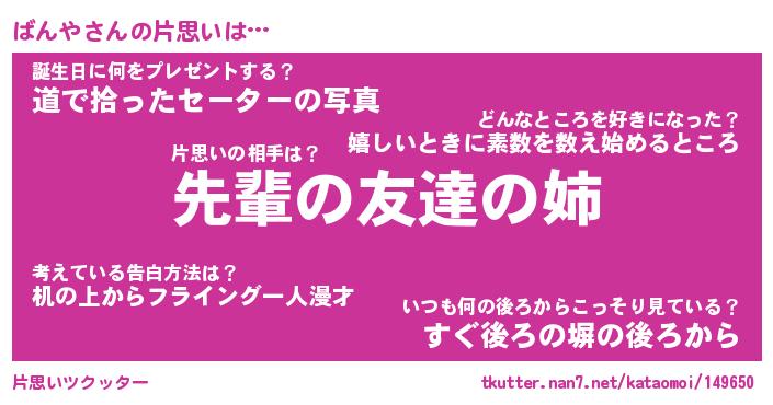 | ヘコむあだ名 | 『ばんもー』『豆乳』『ばんっ子』 |