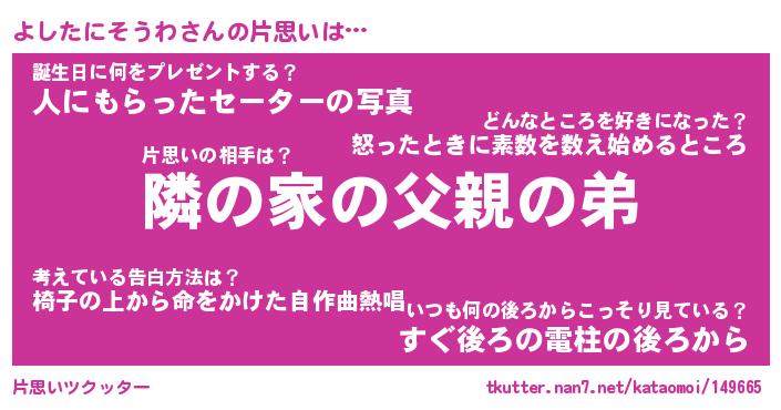 | ヘコむあだ名 | 『よしにゅー』『酢こんぶ』『よしを』 |