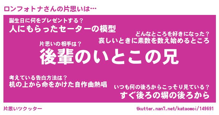 | ヘコむあだ名 | 『ロンもー』『豆乳』『ロンっ子』 |