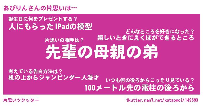 | 意味不明あだ名 | 『ペロリンあぴりん』『永久保存あぴりん』 |