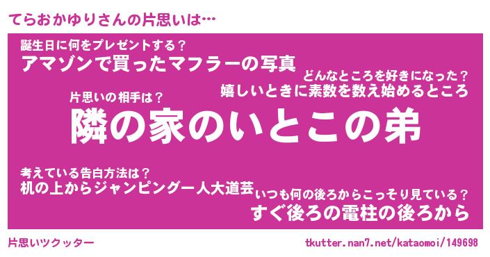 | 女子向けラノベタイトル風あだ名 | 『(仮)てらおかゆりのやんごとなき事情』 |