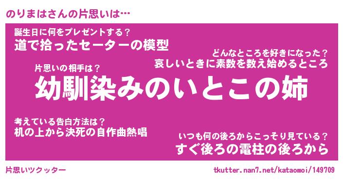 | 男性向けラノベタイトル風あだ名 | 『のりまはの憂鬱』 |