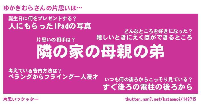 | 女子向けラノベタイトル風あだ名 | 『(仮)ゆかきむらのやんごとなき事情』 |