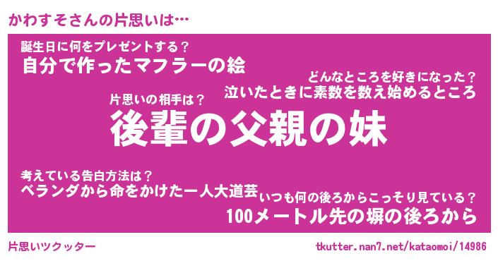 | ヘコむあだ名 | 『かわふぇ~』『つくし』『かわっぺ』 |