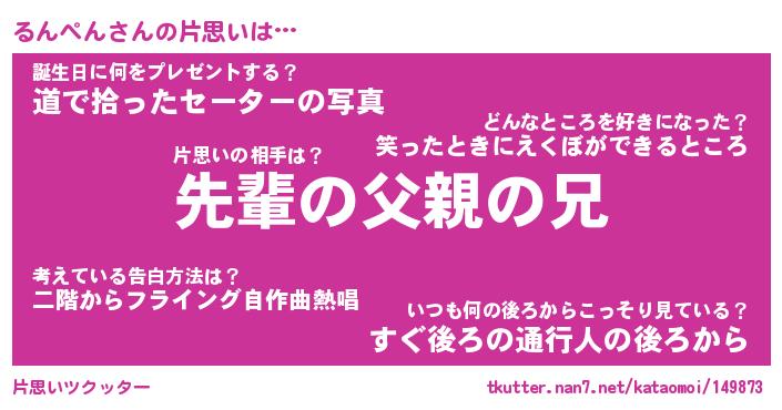 | ファンタジー風あだ名 | 『ルンフェル』『エターナルルンペンー』 |