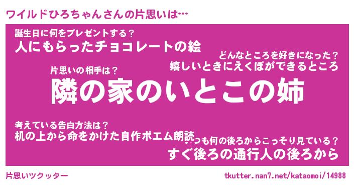| 意味不明あだ名 | 『ペロリンワイルドひろちゃん』 |