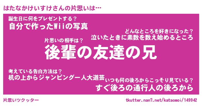 | 胡散臭い通販商品みたいなあだ名 | 『モテモテ間違いなし霊験あらたかなお札…その名も「はたなかけいすけ」』 |