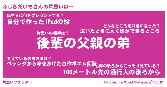| 女子向けラノベタイトル風あだ名 | 『誰かこのふじきだいちを説明してください! ~契約から始まるウェディング~』 |
