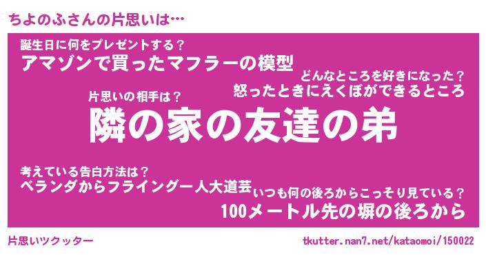 | 2回繰り返すあだ名 | 『ちよちよ』『ちちよよ』『うるうる』 |
