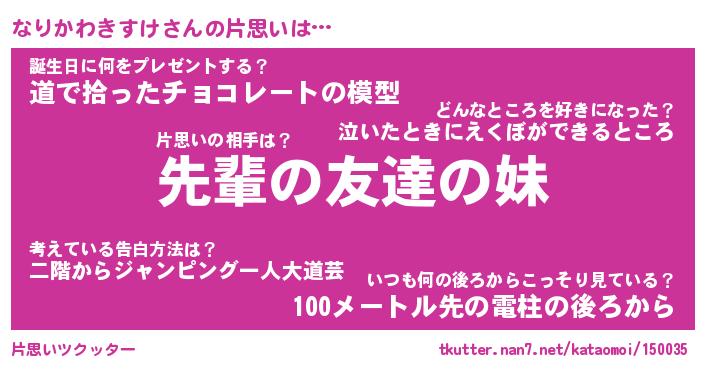 | 胡散臭い通販商品みたいなあだ名 | 『モテモテ間違いなし霊験あらたかなお札…その名も「なりかわきすけ」』 |