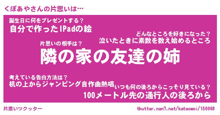 | 女子向けラノベタイトル風あだ名 | 『(仮)くぼあやのやんごとなき事情』 |