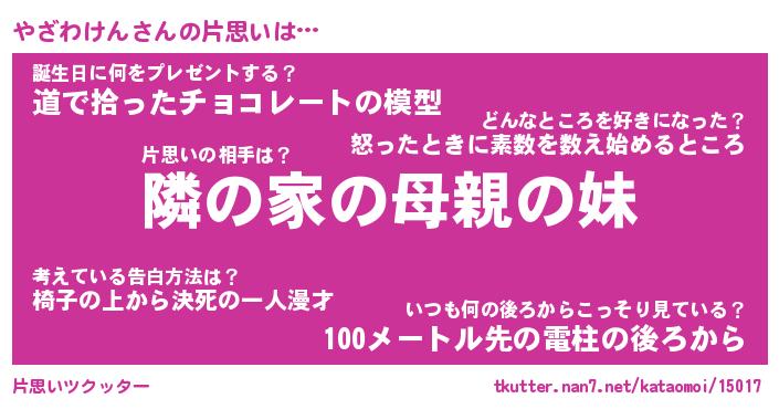 | ツイッター | やざわけんさんのツイッターID『kikurage_man』 |