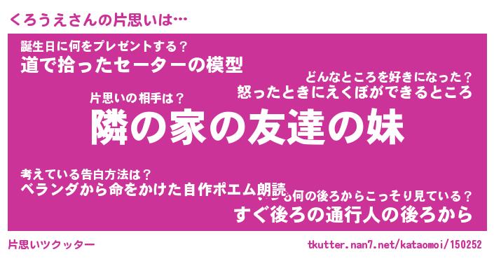 | 男性向けラノベタイトル風あだ名 | 『くろうえの憂鬱』 |