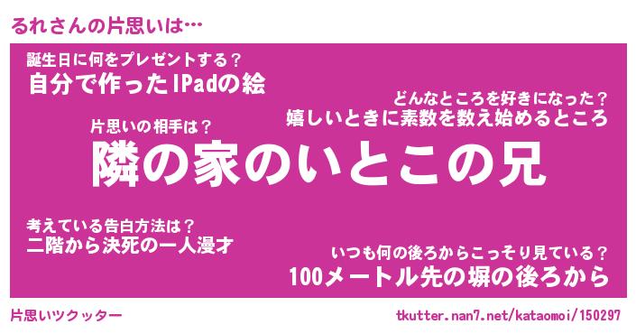 | ヘコむあだ名 | 『るれにゅー』『酢こんぶ』 |