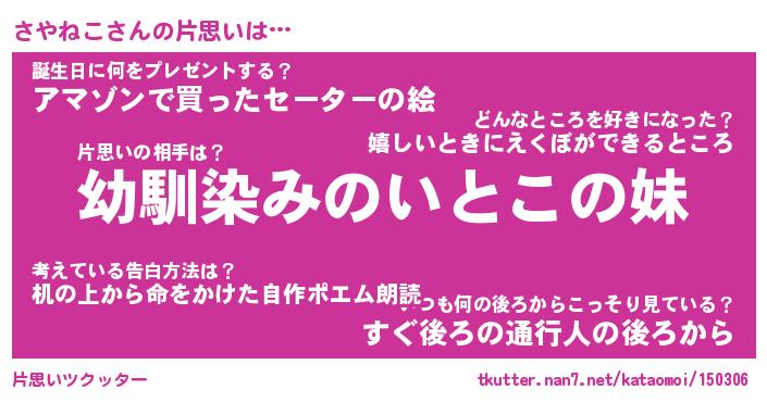 | 男性向けラノベタイトル風あだ名 | 『さやねこの憂鬱』 |
