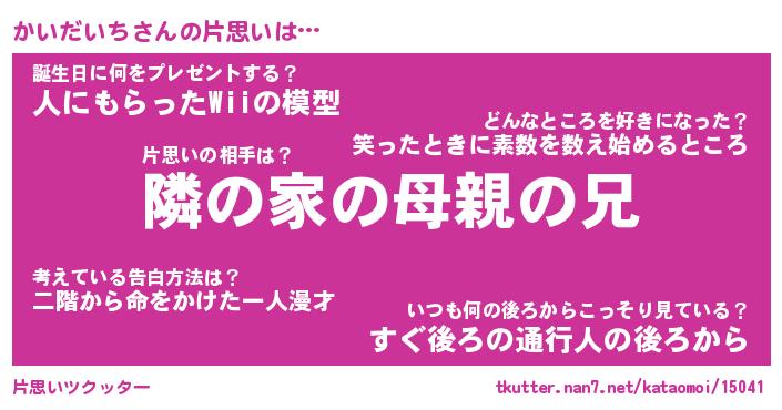 | 男性向けラノベタイトル風あだ名 | 『かいだいちの憂鬱』 |
