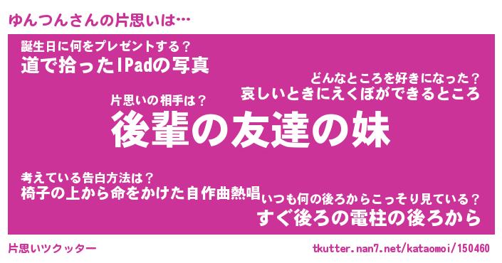 | 胡散臭い通販商品みたいなあだ名 | 『億万長者になれる霊験あらたかなお札…その名も「ゆんつん」』 |